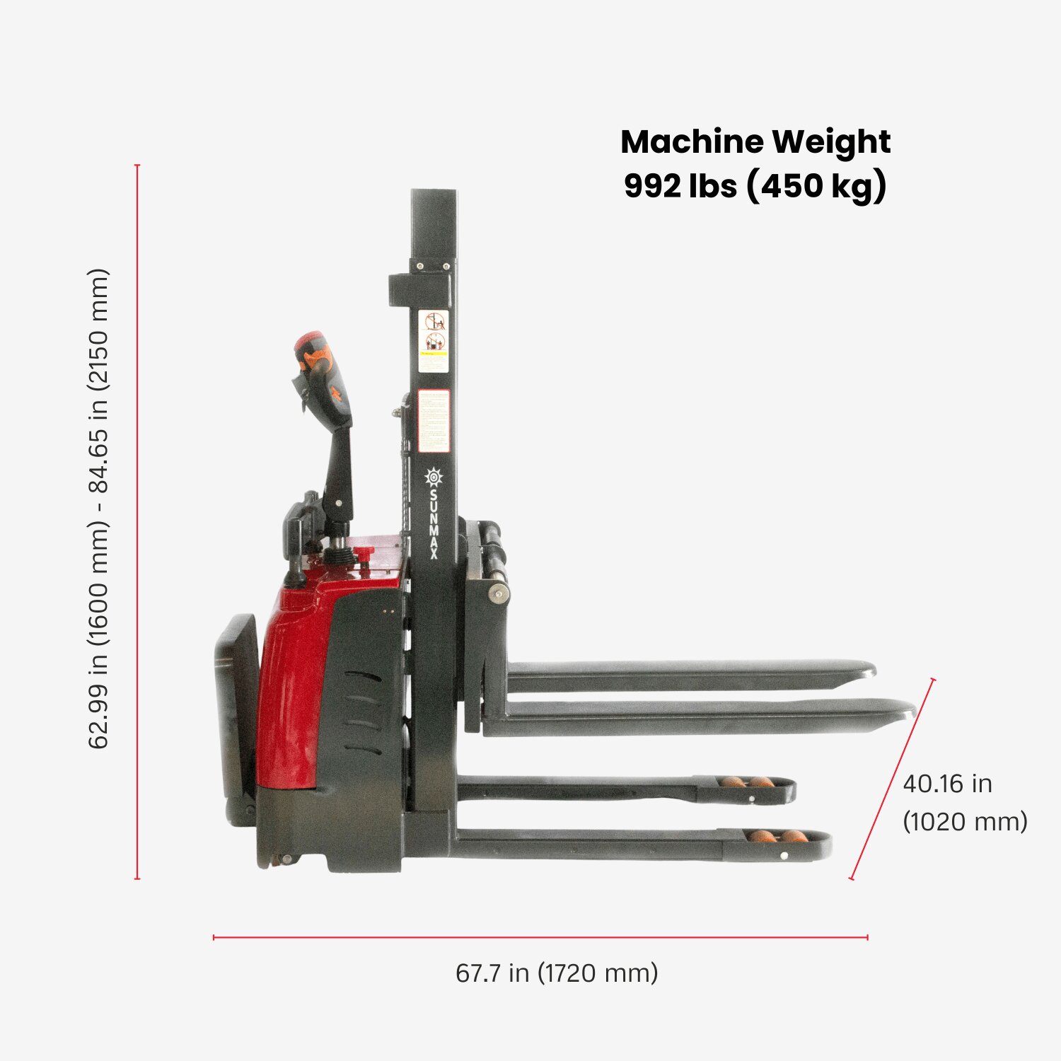 - Net Weight with battery: 992 lbs (450 kg)