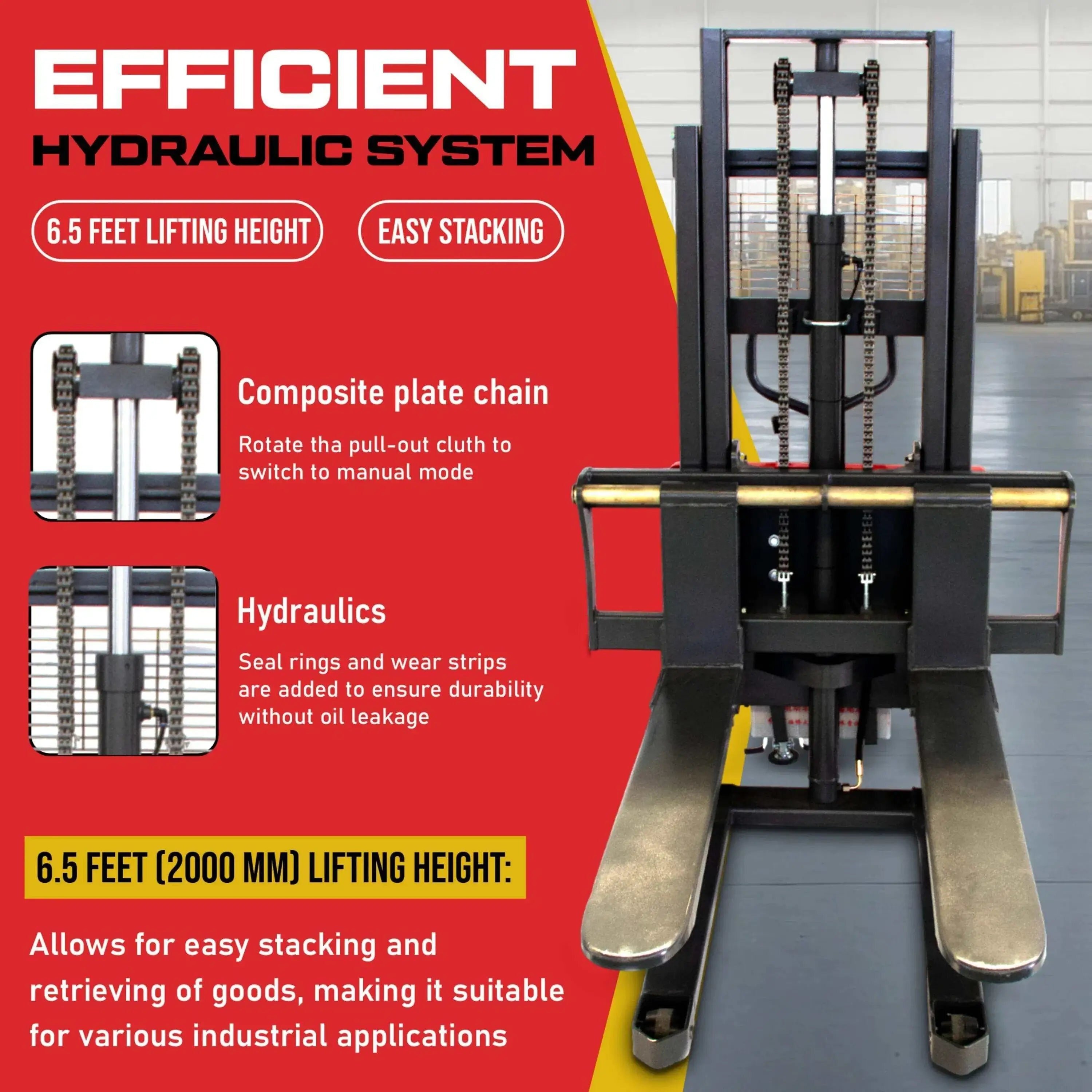 - 3300 lbs (1.5 ton, 1500 kg) Capacity: Handles heavy loads with ease, ensuring efficient material handling and improved productivity.
