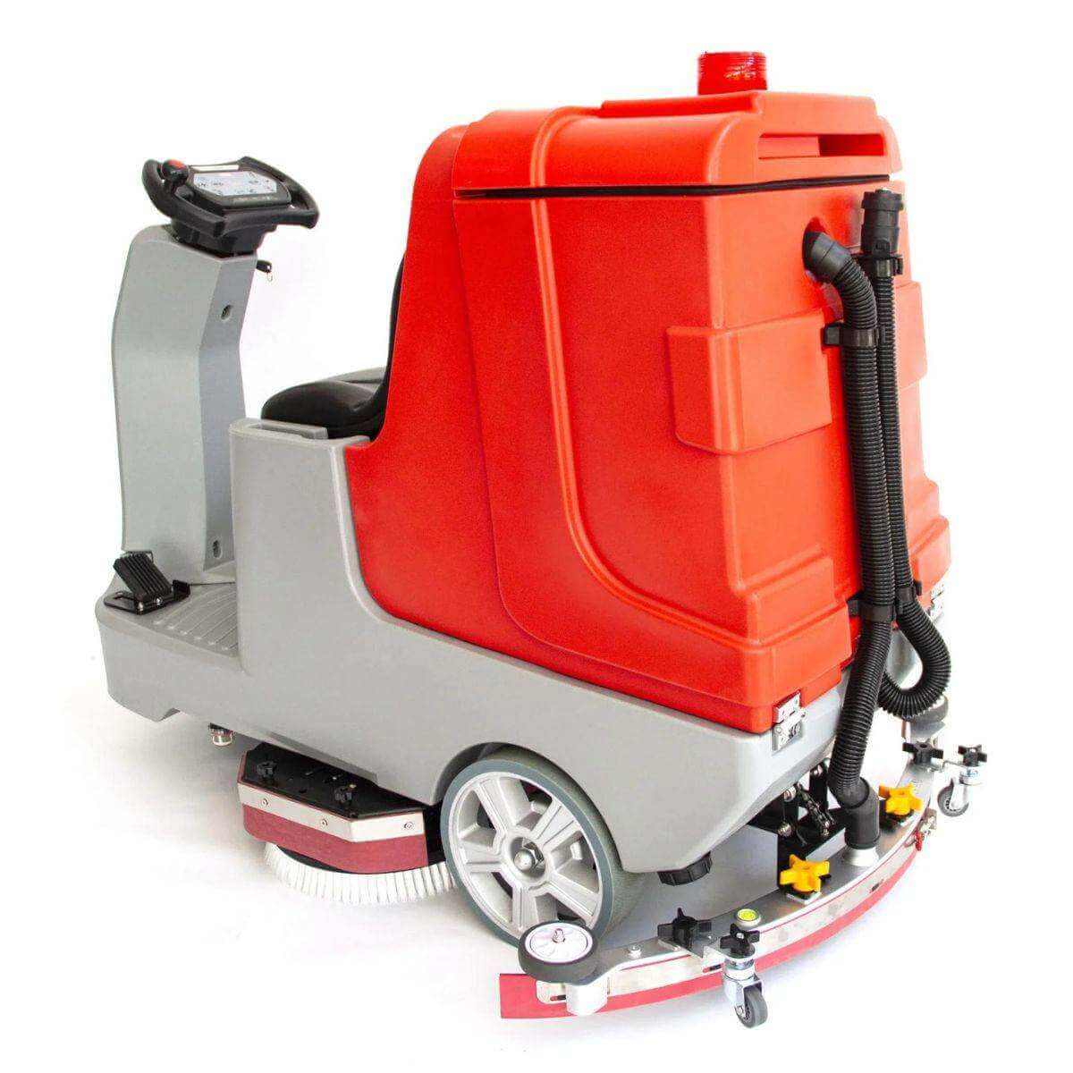 Capable of cleaning up to 80,000 square feet per hour, the ride-on floor scrubber is ideal for warehouses, shopping centers, schools, and other high-traffic environments. Its user-friendly controls and ergonomic seating design provide comfortable operation, even during extended use.