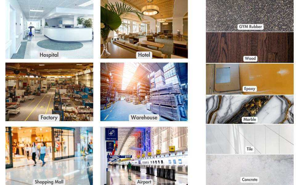 With 14" brush scrubbing width and 18" squeegee suction width, this RT15AC compact commercial floor scrubber machine is easy to operate for everyone.